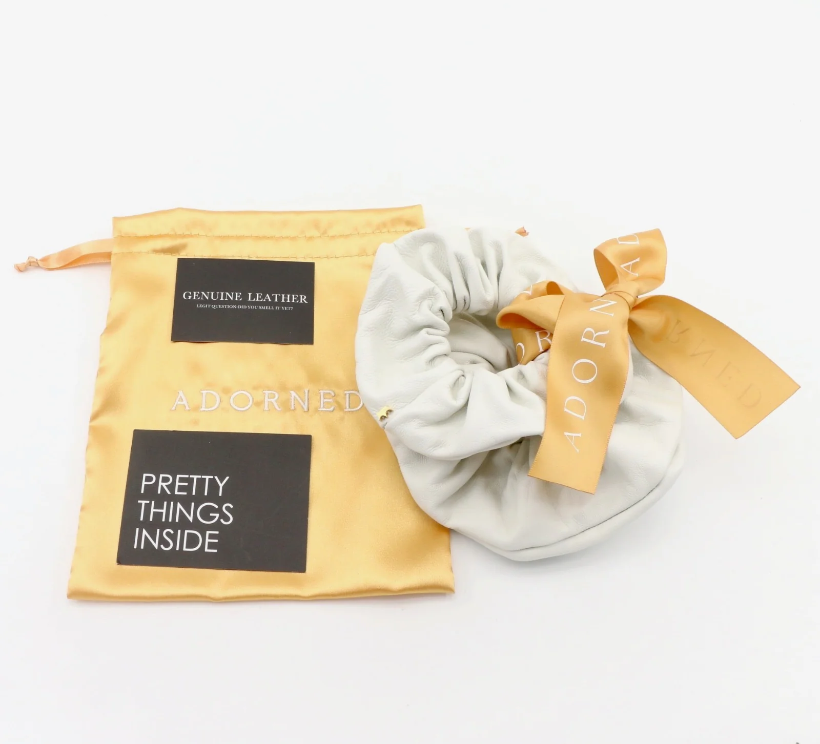 Adorned x Tatiana Dwight proudly presents the Isabella Authentic Leather Scrunchie Set! Level up your hair game with these one-of-a-kind, GENUINE sheepskin leather scrunchies! This set features: